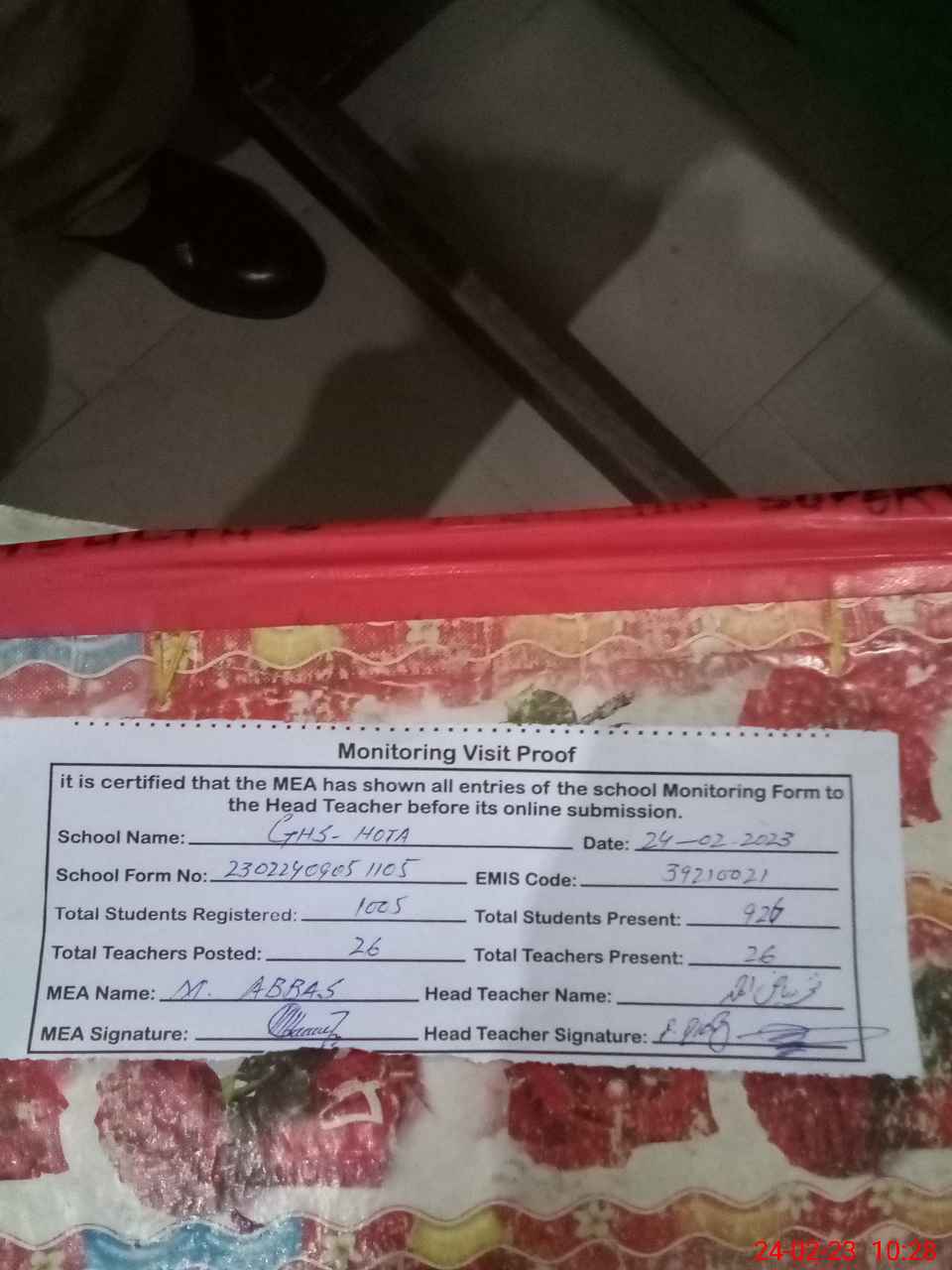 | EMIS Code: 39210021 | Name of School: GHS HOTTA | |||