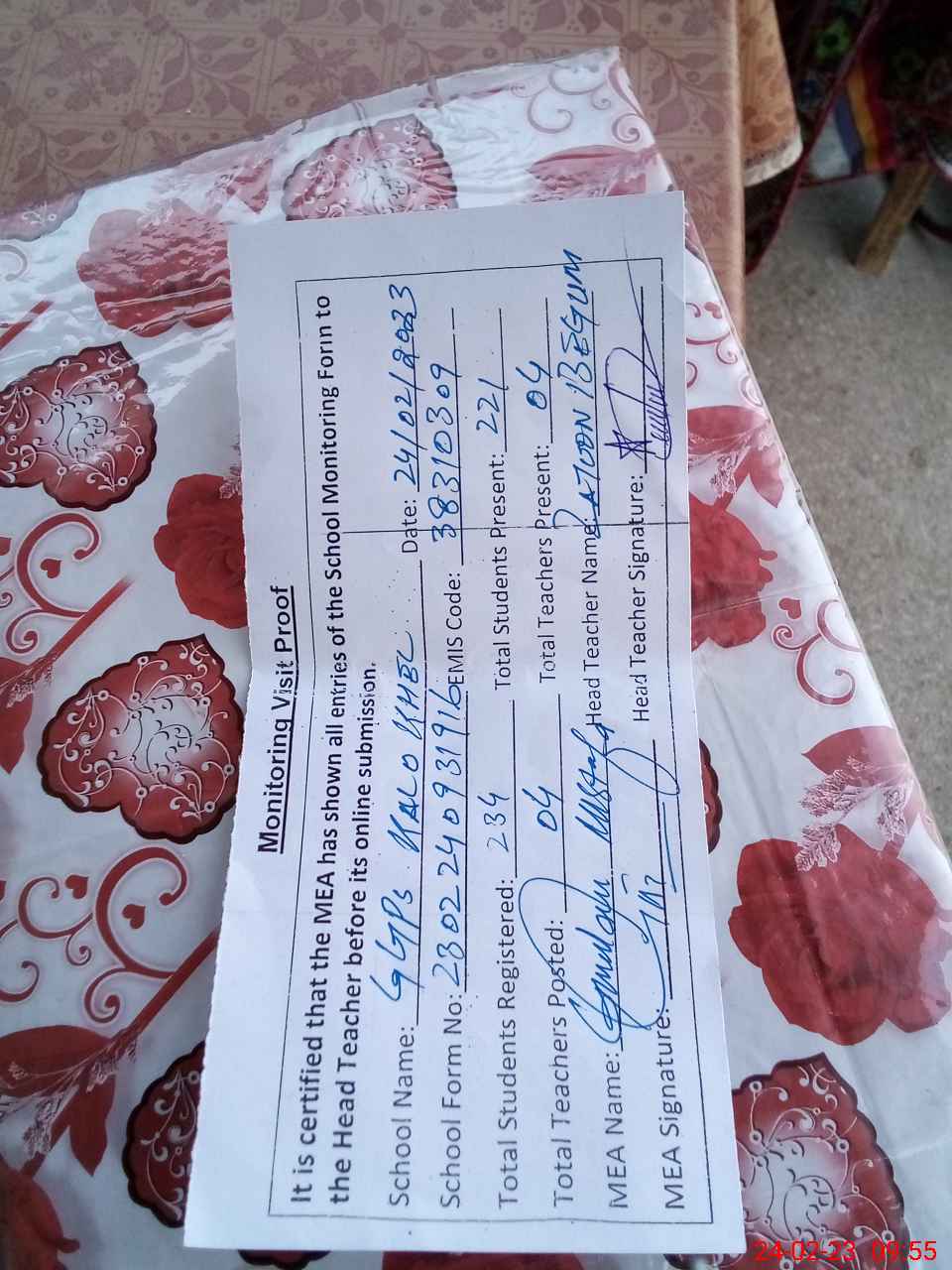 | Certified that this School was Inspected by the Undersigned MEA/DMO Today and the Information Stated Above is as Per Record. | |||||