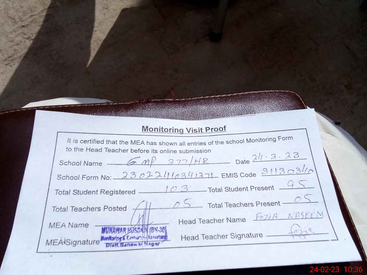 | EMIS Code: 31130340 | Name of School: GGPS CHAK NO 277 HR (E) | |||