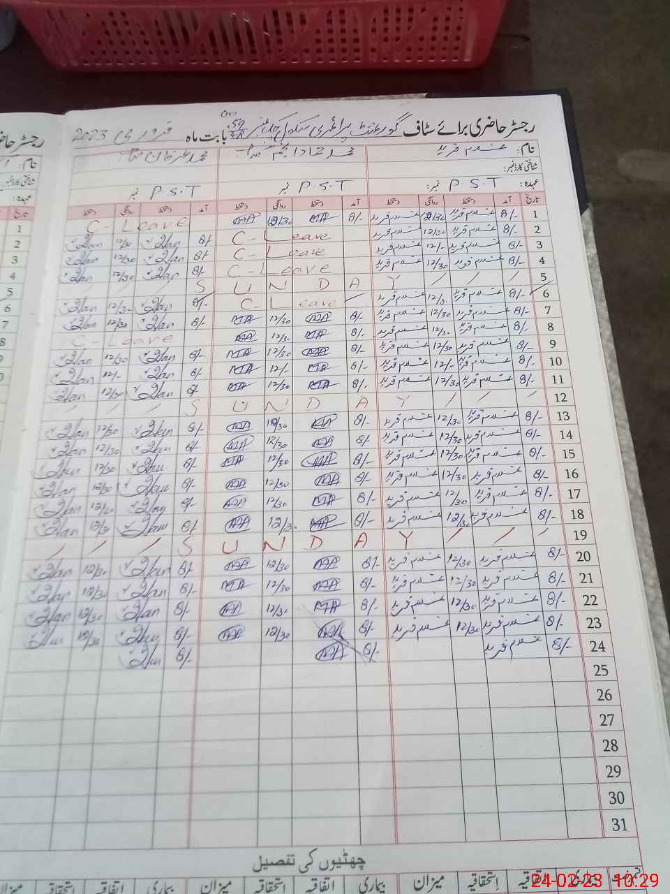 | CNIC | Full Name | Designation | R/C | Absence During Last Calender Month |