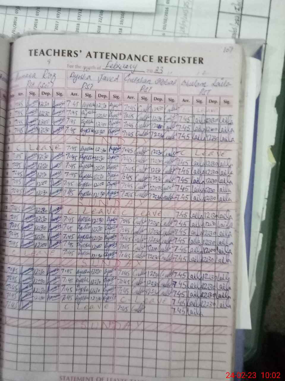 | Leave | Duty | Absent | Maternity | Medical | Ex- Pak |