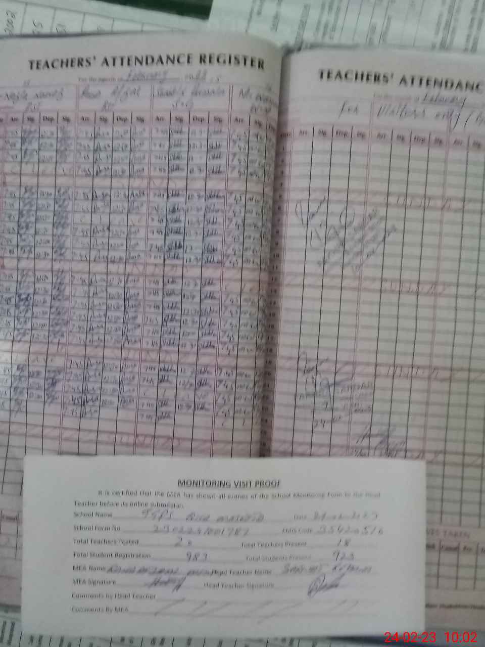| Attendance Register | Head Teacher | MEA with School | Visit Proof |