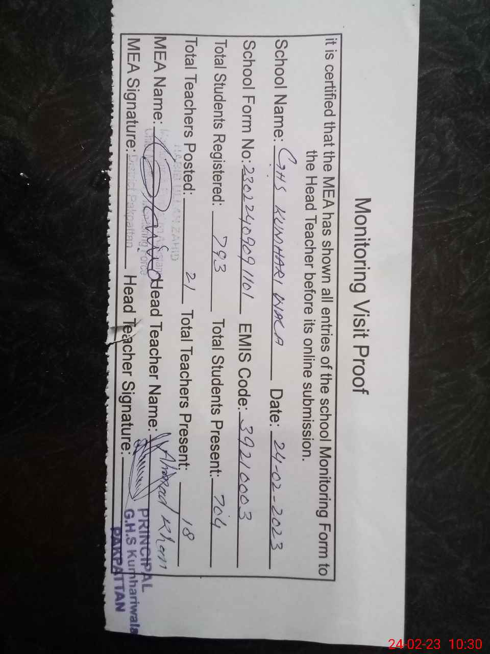 | EMIS Code: 39210003 | Name of School: GHS KUMHARAI WALA | |||