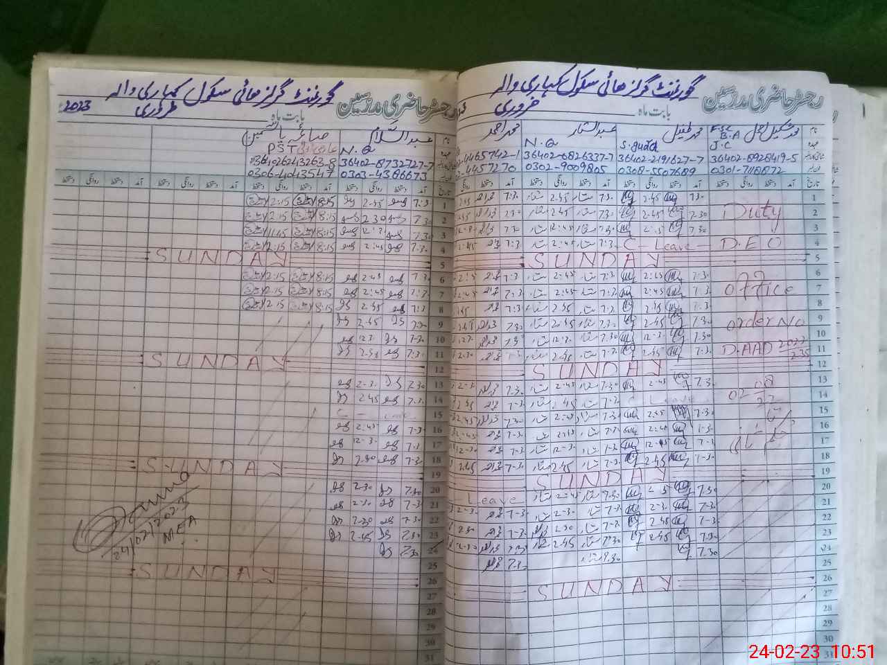 | Name: Ma**** Fa**** Designation: (School Headmaster's/Headmistress's) S.S.T.(Science ) Phone/Cell Number: 03**** |