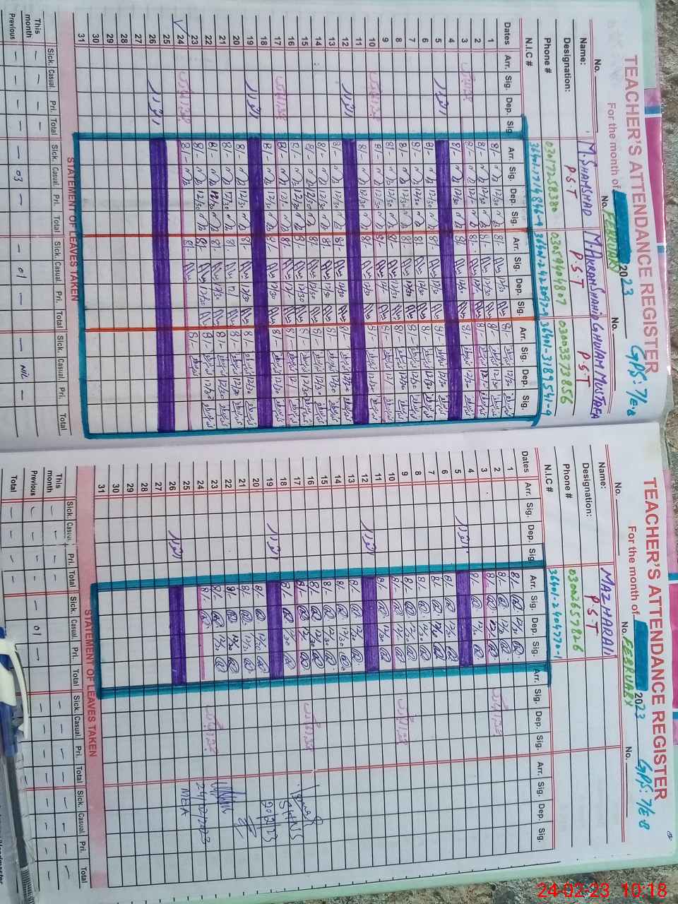 | Name: MU**** SH**** Designation: (School Headmaster's/Headmistress's) PST Phone/Cell Number: 03**** |