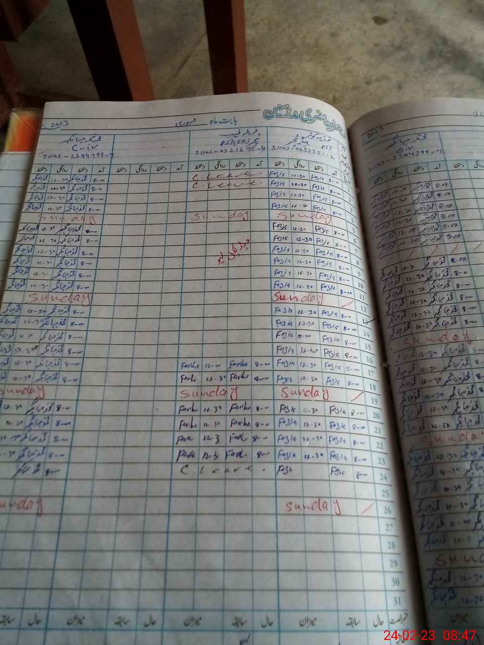 | CNIC | Full Name | Designation | R/C | Absence During Last Calender Month |