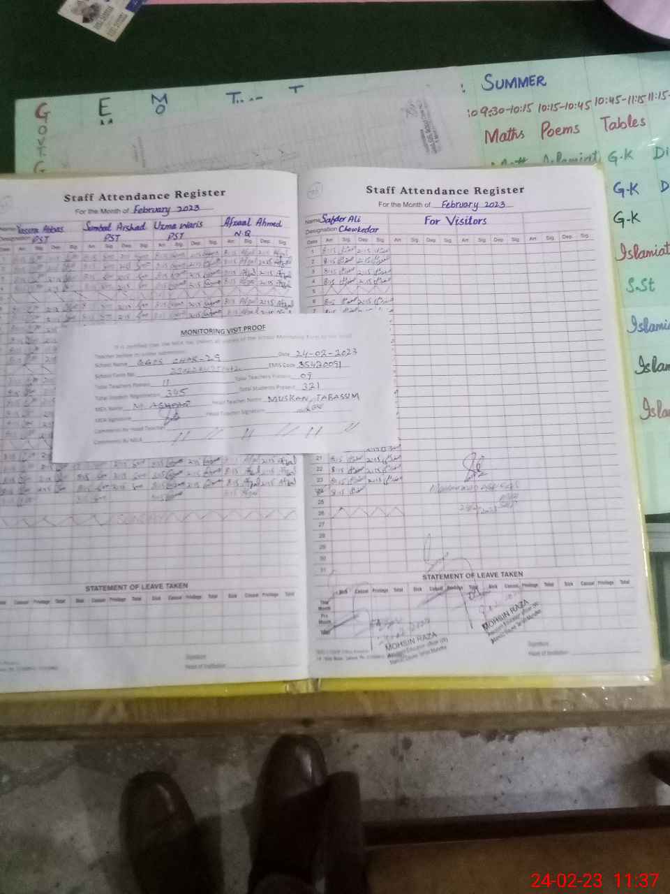 | Attendance Register | Head Teacher | MEA with School | Visit Proof |
