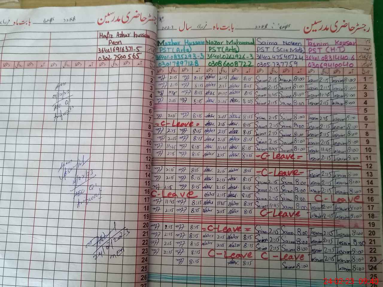 | CNIC | Full Name | Designation | R/C | Absence During Last Calender Month |
