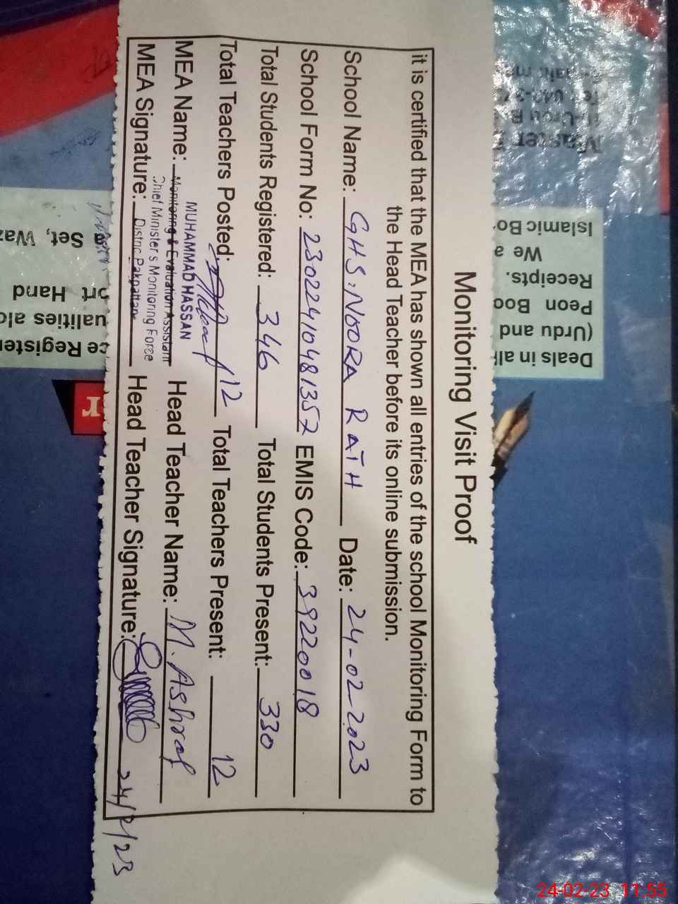 | EMIS Code: 39220018 | Name of School: GHS NOORA RATH | |||