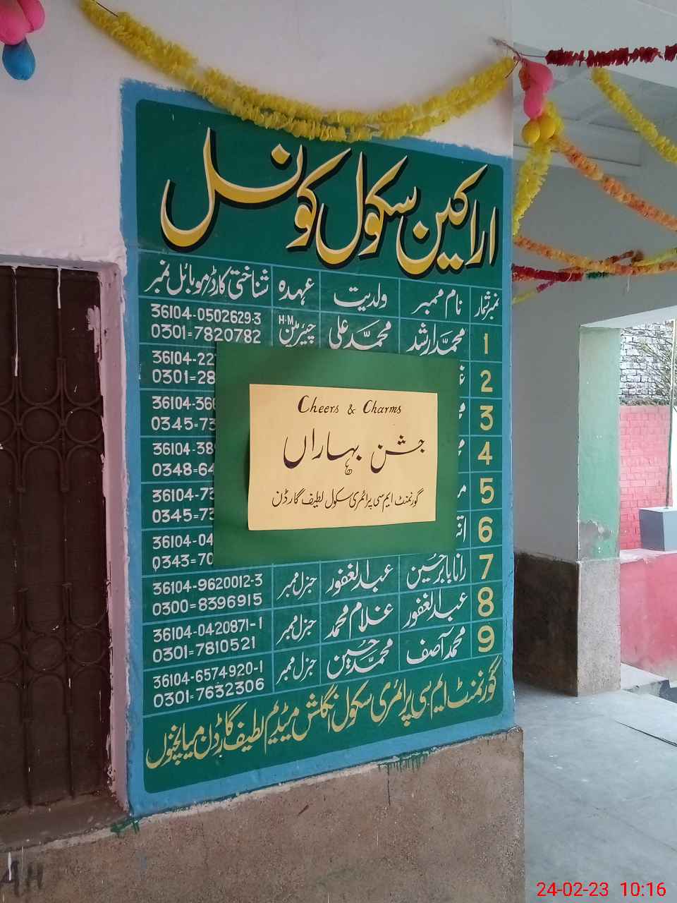 | EMIS Code: 36430135 | Name of School: GPS MC LATIF GARDEN SADIQ COLONY MIAN CHANNU | |||