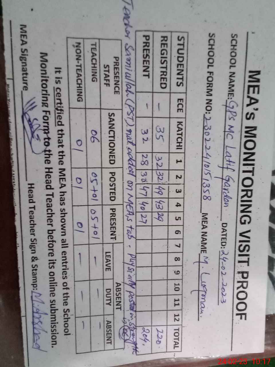 | Monitoring Date: 24-02-2023 | Start Time: 24-02-2023 09:45 AM | End Time: 24-02-2023 10:29 AM | Name of MEA: Mu**** Lu**** | |