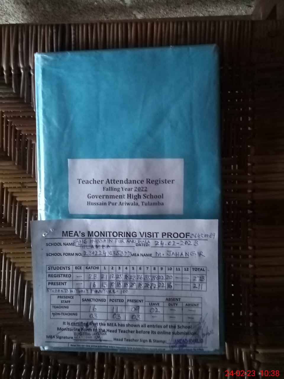 | EMIS Code: 36430069 | Name of School: GHS HUSSAIN PUR AARI WALA, TULAMBA | |||