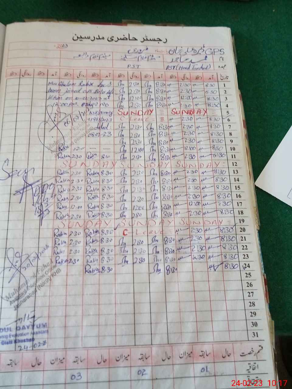 | CNIC | Full Name | Designation | R/C | Absence During Last Calender Month |