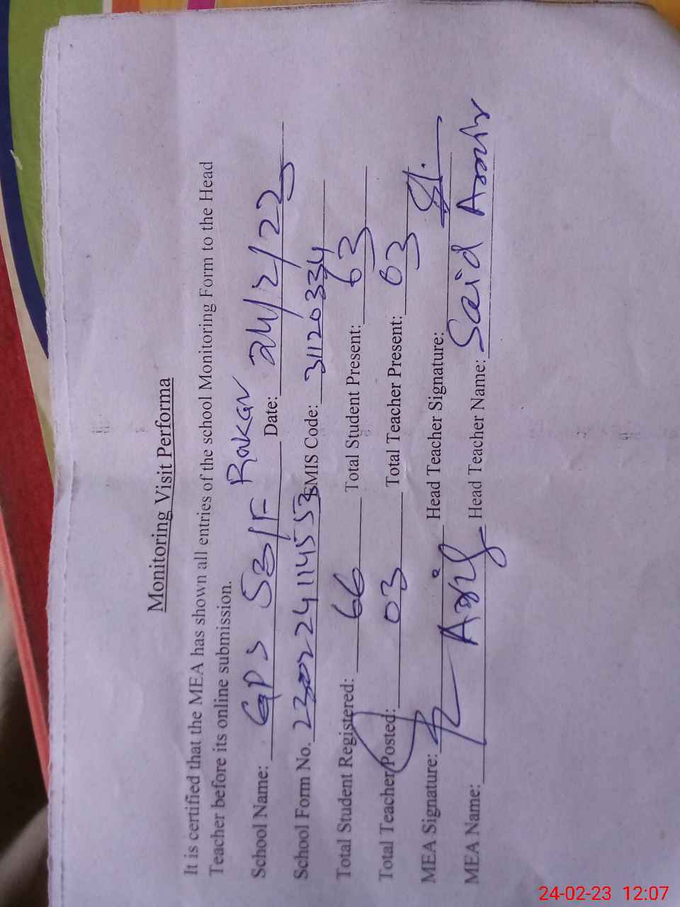 | EMIS Code: 31120334 | Name of School: GPS 53 RAKAR | |||