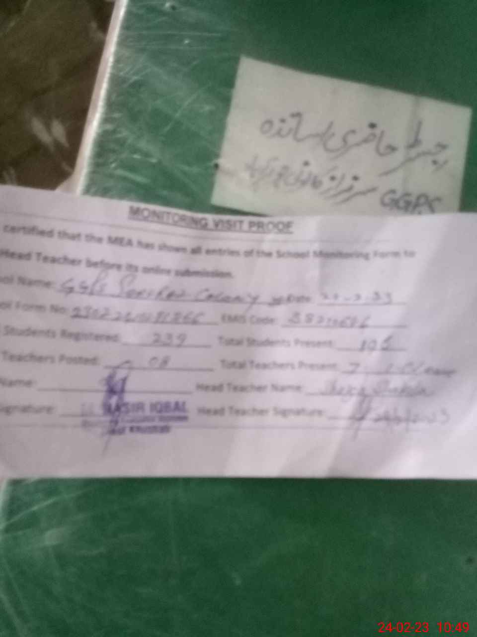 | EMIS Code: 38210646 | Name of School: GGPS SARFRAZ COLONY JAUHARABAD | |||