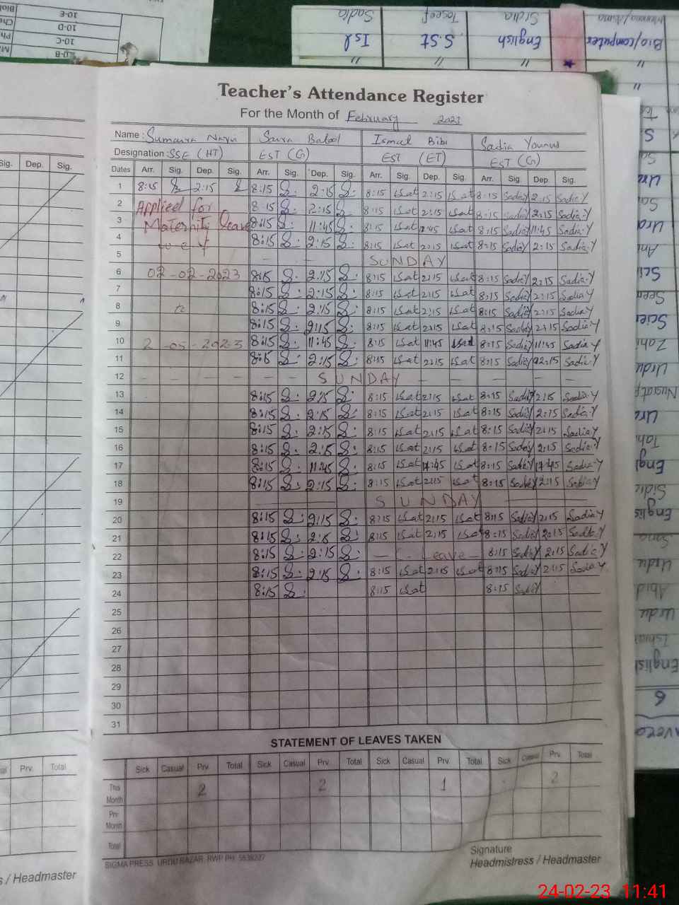 | 37**** | Su**** Na**** | SSE | Contract | 0 | 0 | 0 | 0 | 0 | 0 | 0 | 0 | 0 | Maternity |