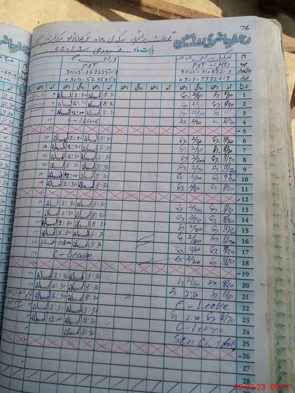 | Name: Sh**** Ah**** Designation: (School Headmaster's/Headmistress's) PST Phone/Cell Number: 03**** |