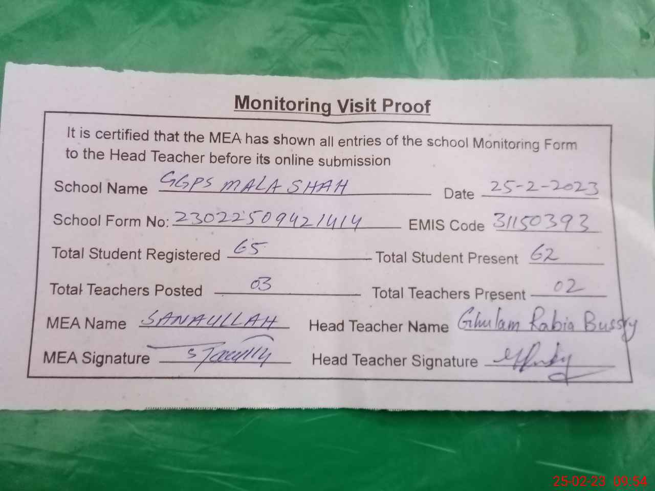 | EMIS Code: 31150393 | Name of School: GGPS MALAY SHAH | |||
