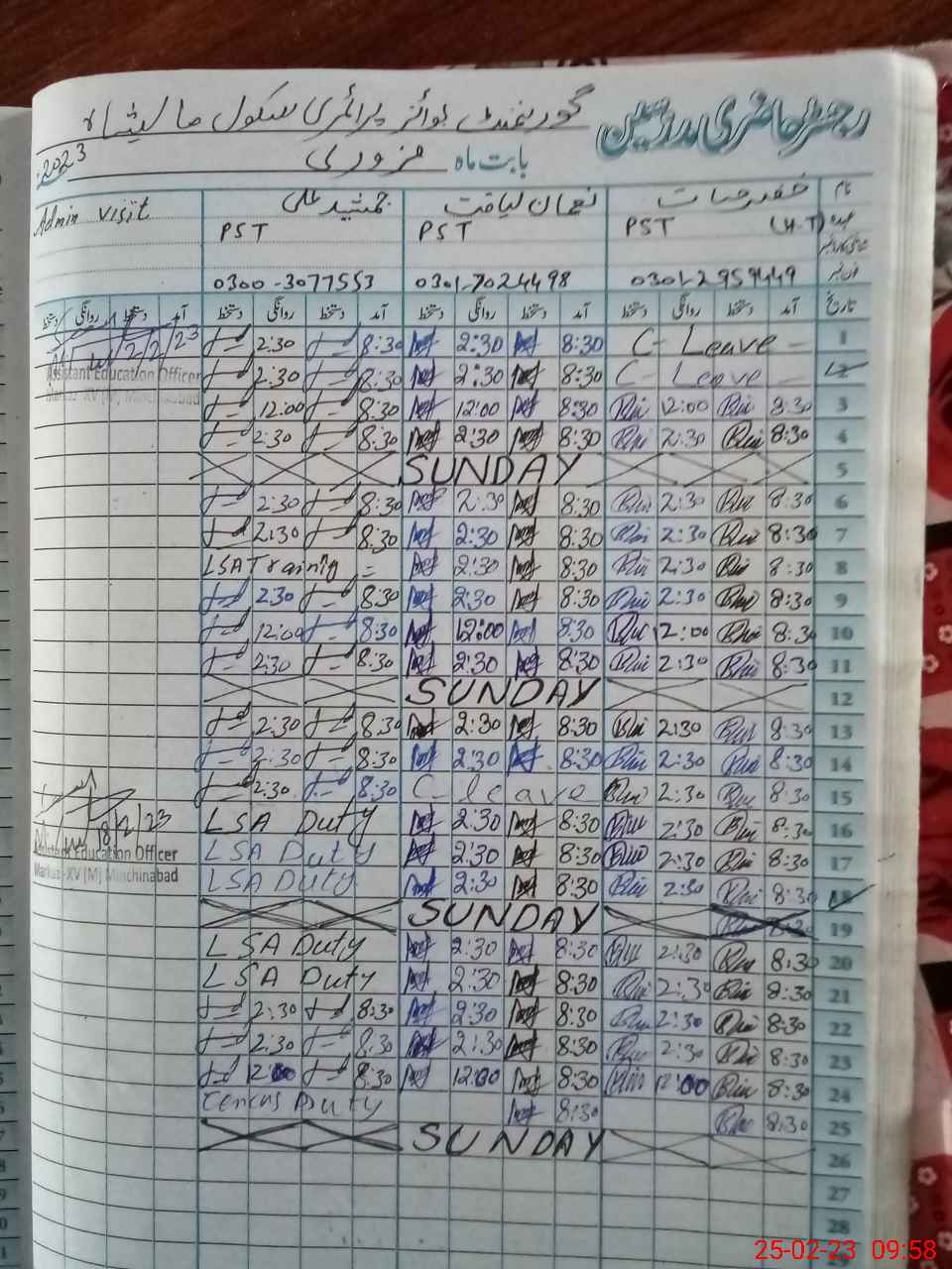 | Name: KH**** HA**** Designation: (School Headmaster's/Headmistress's) PST Phone/Cell Number: 03**** |