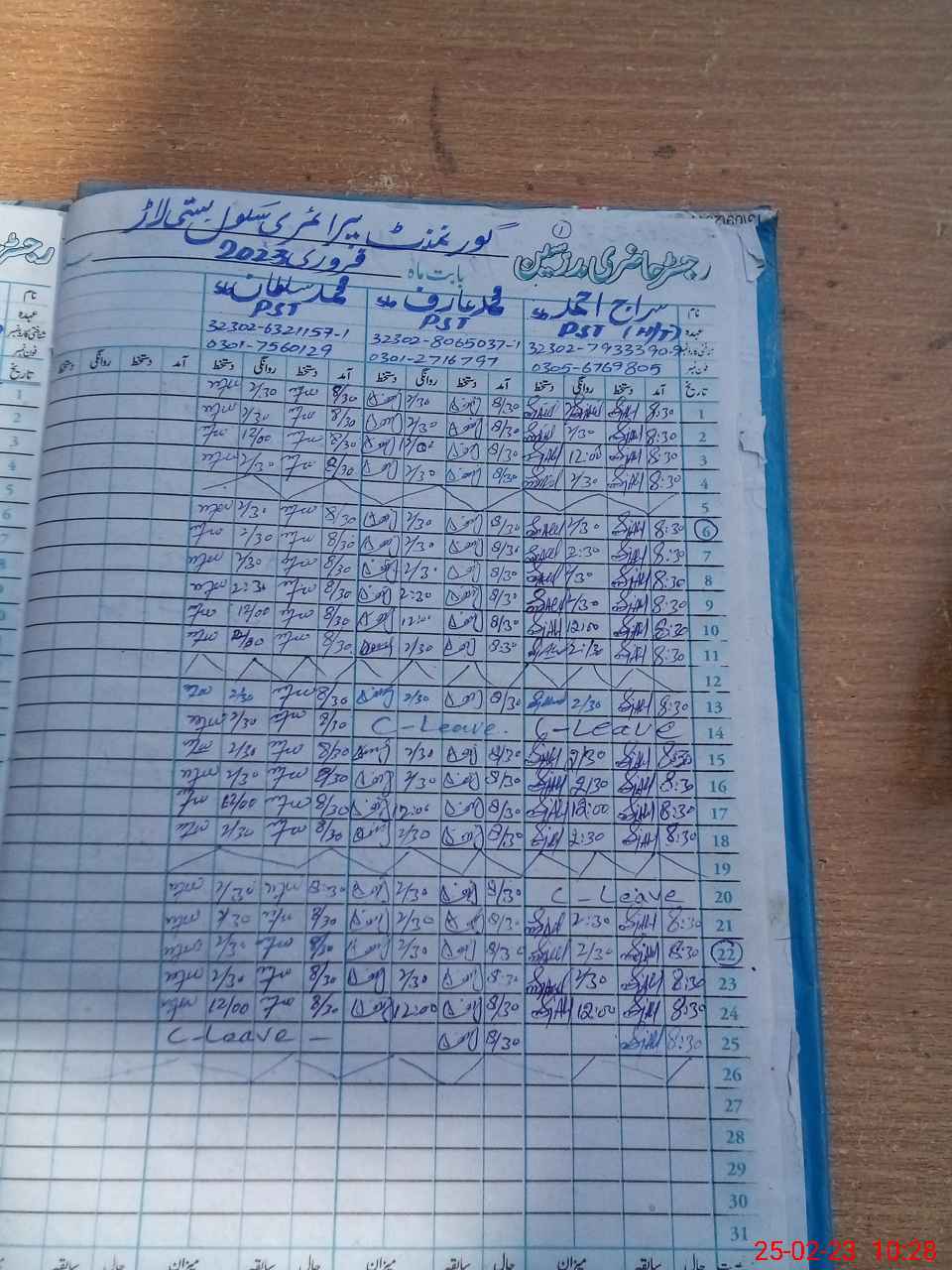 | CNIC | Full Name | Designation | R/C | Absence During Last Calender Month |