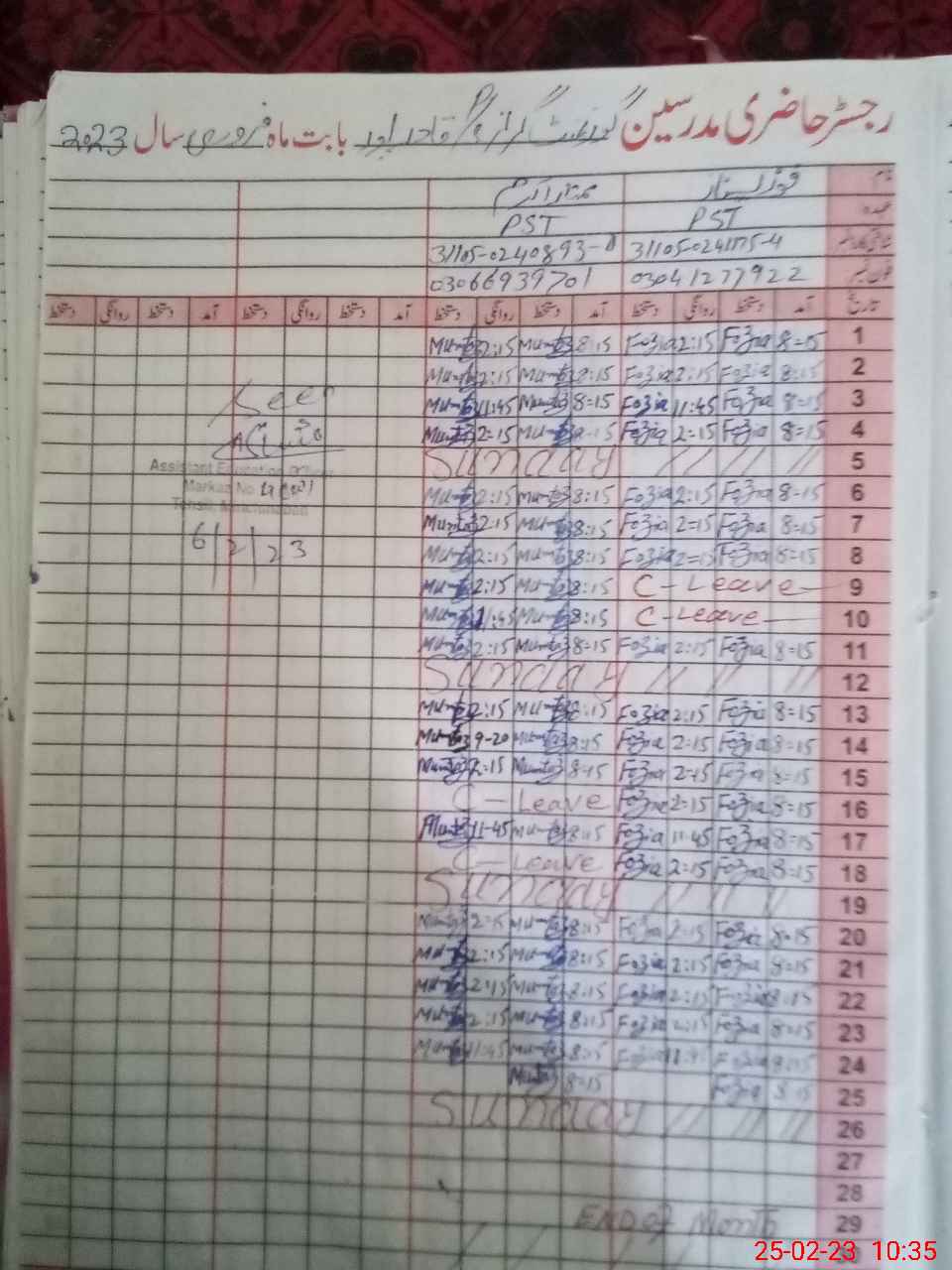 | Name: Mu**** Ak**** Designation: (School Headmaster's/Headmistress's) PST Phone/Cell Number: 03**** |
