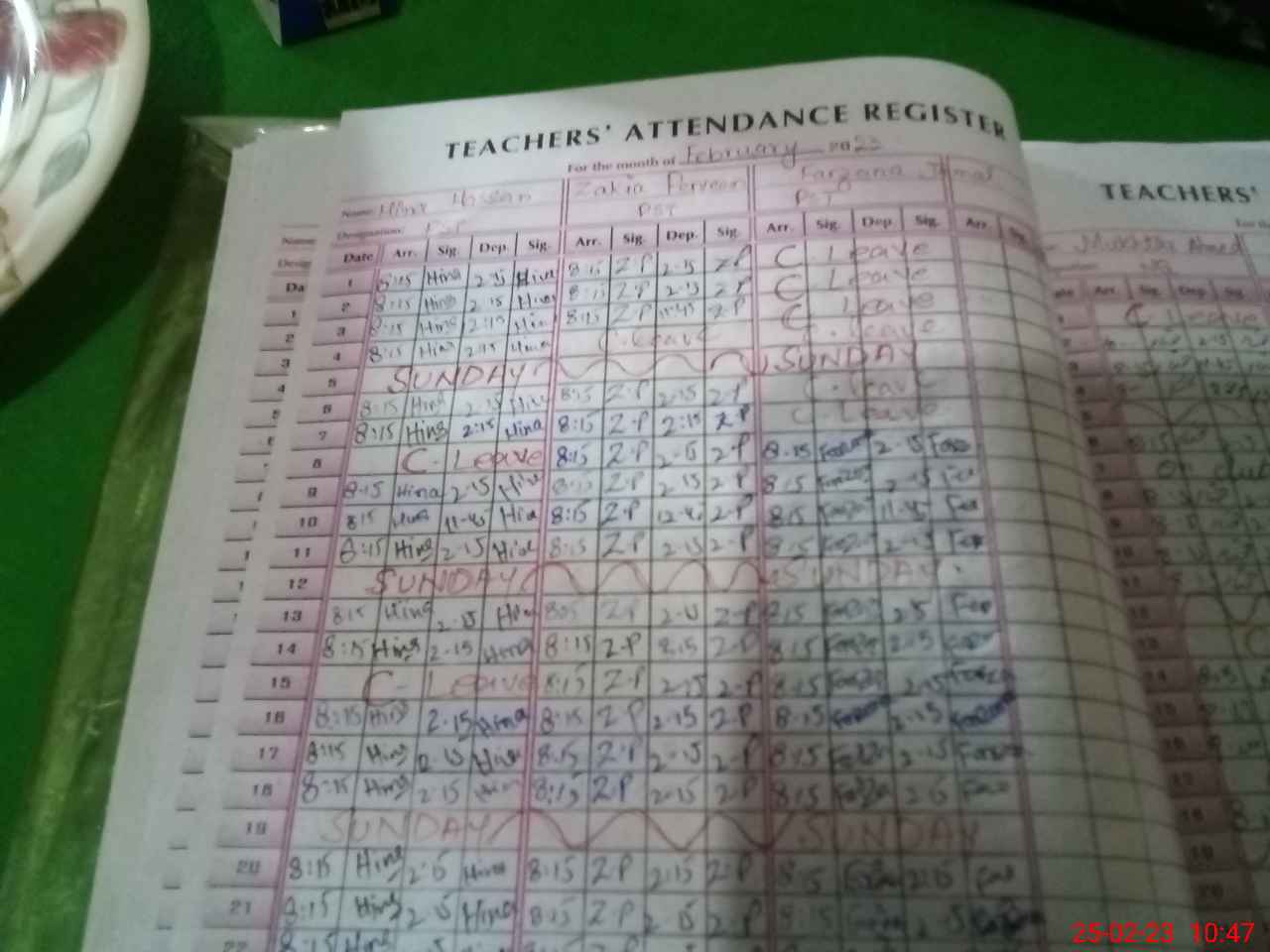 | Remarks (Use Separate Page if Required): PST HINA HASSAN TRANSFER IN THIS SCHOOL BUT NOT IN TEACHER LIST | |||||