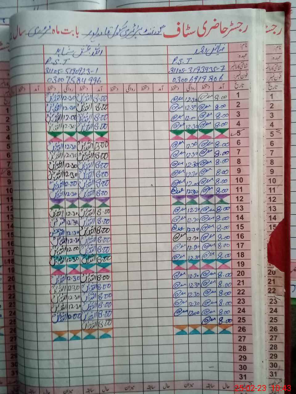 | Name: FI**** AH**** Designation: (School Headmaster's/Headmistress's) P S T Phone/Cell Number: 03**** |