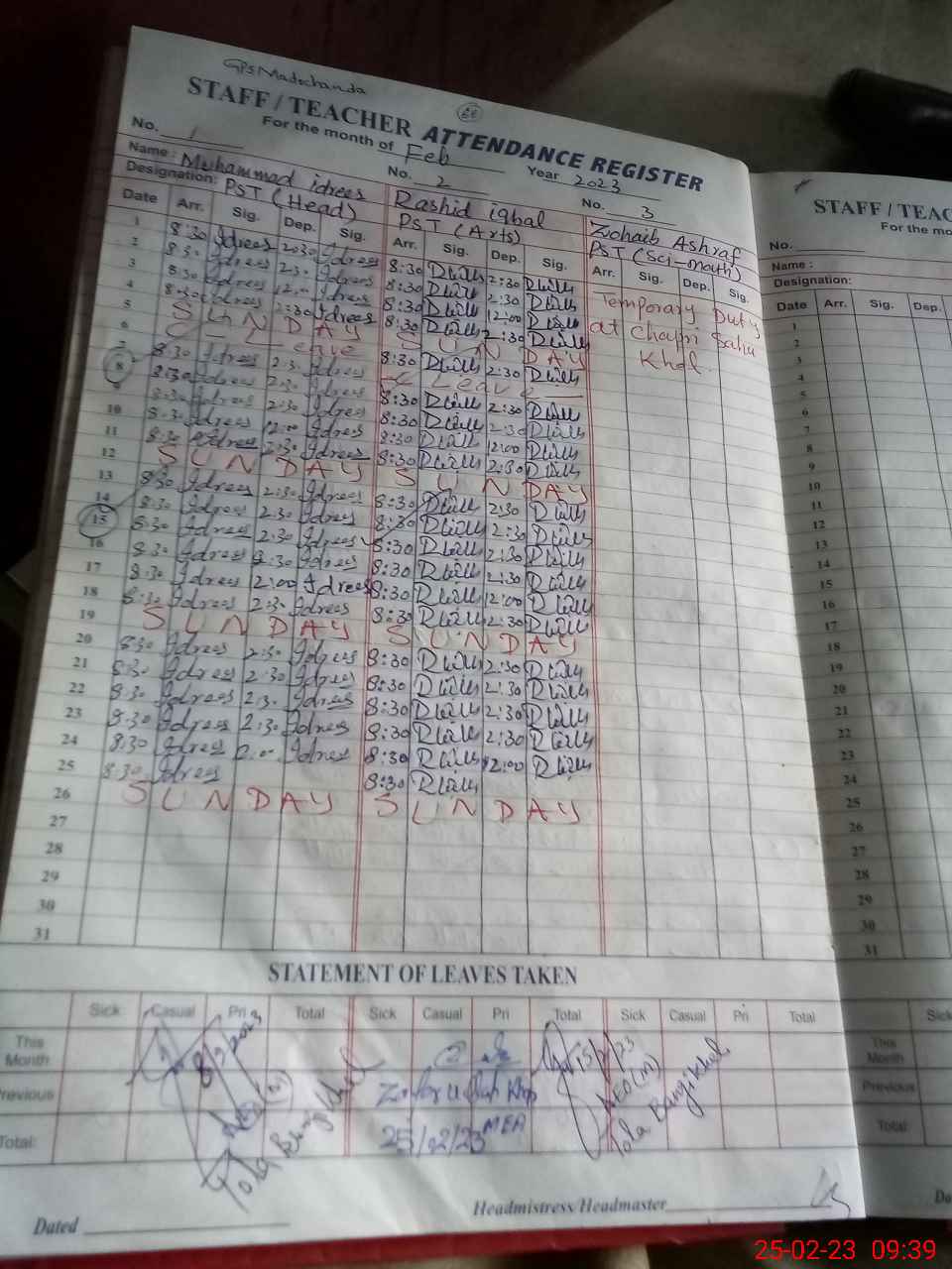 | Name: Mu**** Id**** Designation: (School Headmaster's/Headmistress's) PST Phone/Cell Number: 03**** |