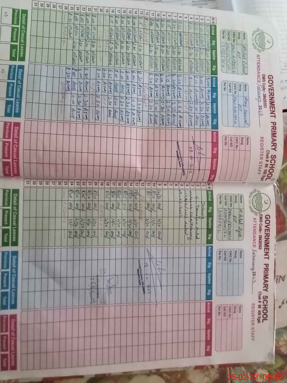 | CNIC | Full Name | Designation | R/C | Absence during last cal. month |