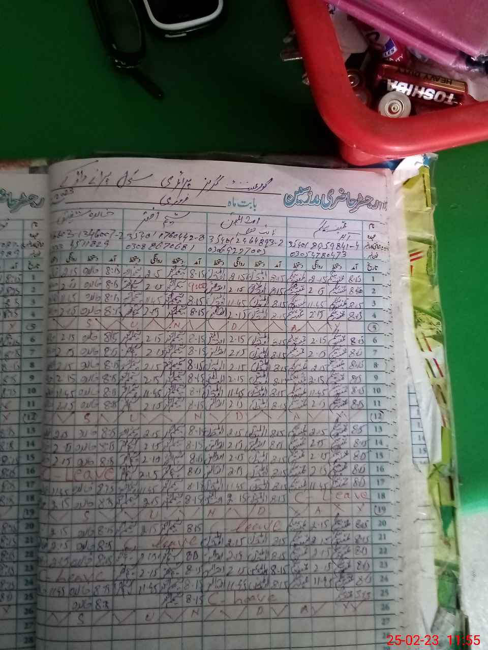| Leave | Duty | Absent | Maternity | Medical | Ex- Pak |