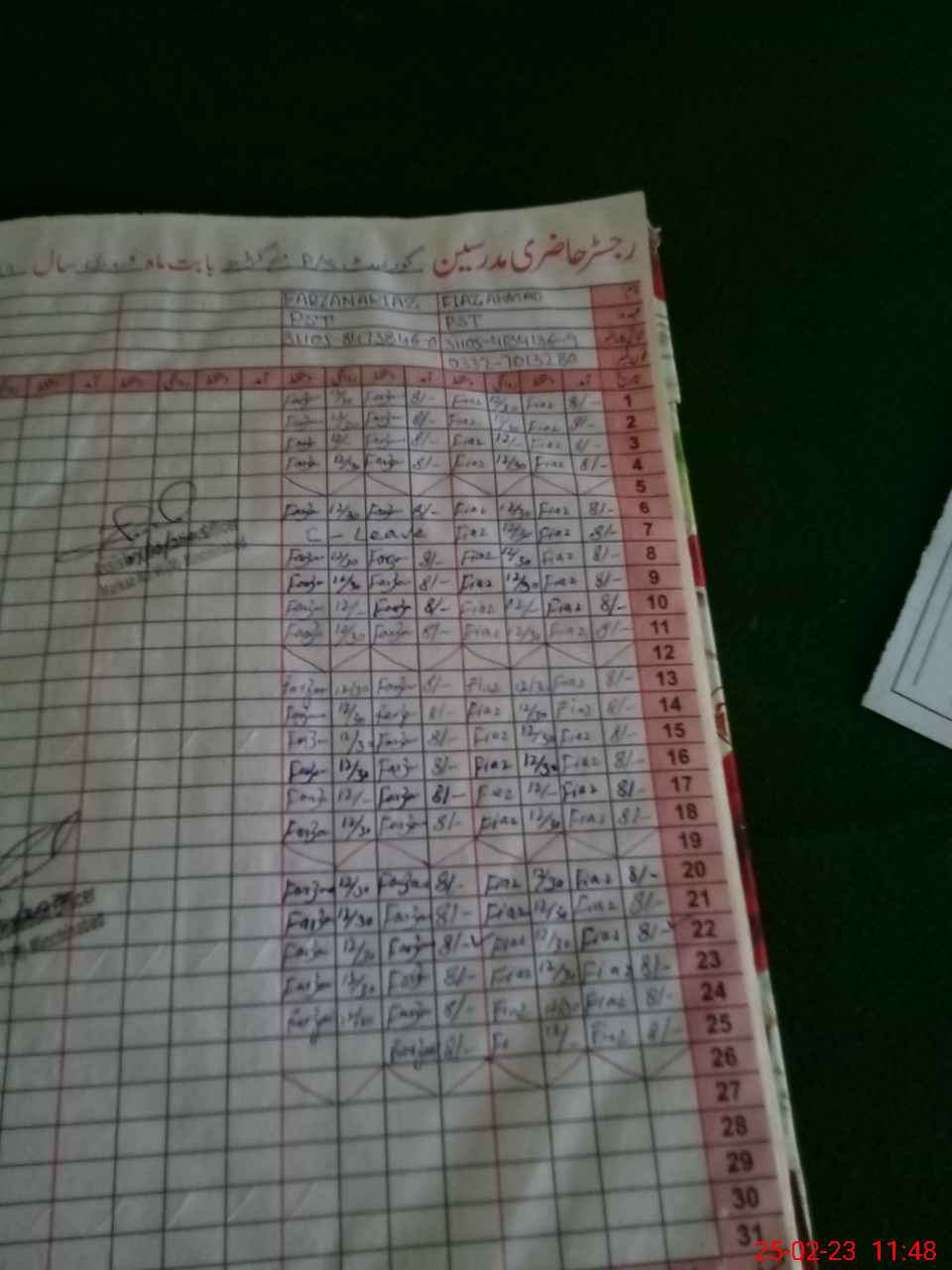 | Name: FI**** AH**** Designation: (School Headmaster's/Headmistress's) PST Phone/Cell Number: 03**** |
