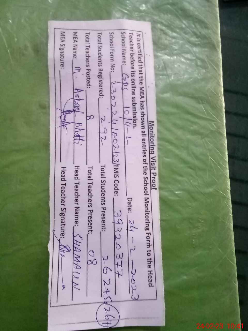 | Certified that this School was Inspected by the Undersigned MEA/DMO Today and the Information Stated Above is as Per Record. | |||||