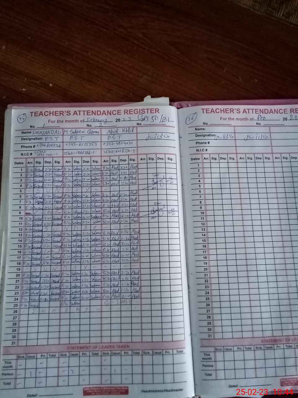 | 35**** | Ab**** Kh**** | PST | Regular | 1 | 22 | 0 | 0 | 0 | 0 | 0 | 0 | 1 | Casual |
