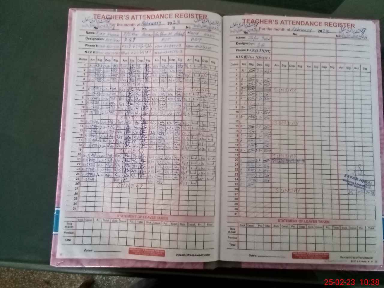 | Name: IJ**** HU**** Designation: (School Headmaster's/Headmistress's) PST Phone/Cell Number: 03**** |
