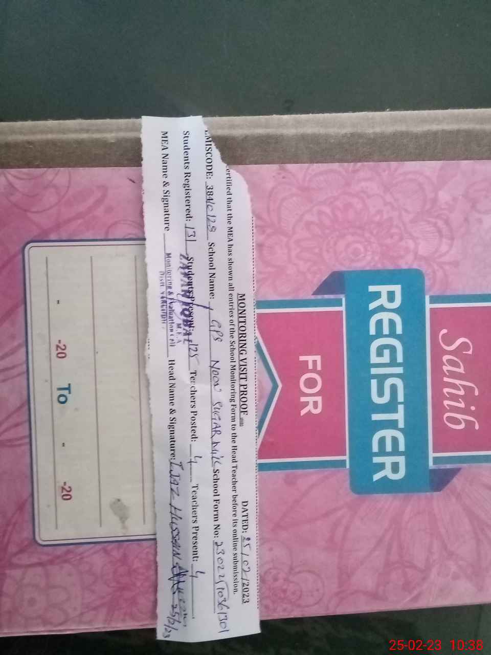 | Attendance Register | Head Teacher | MEA with School | Visit Proof |
