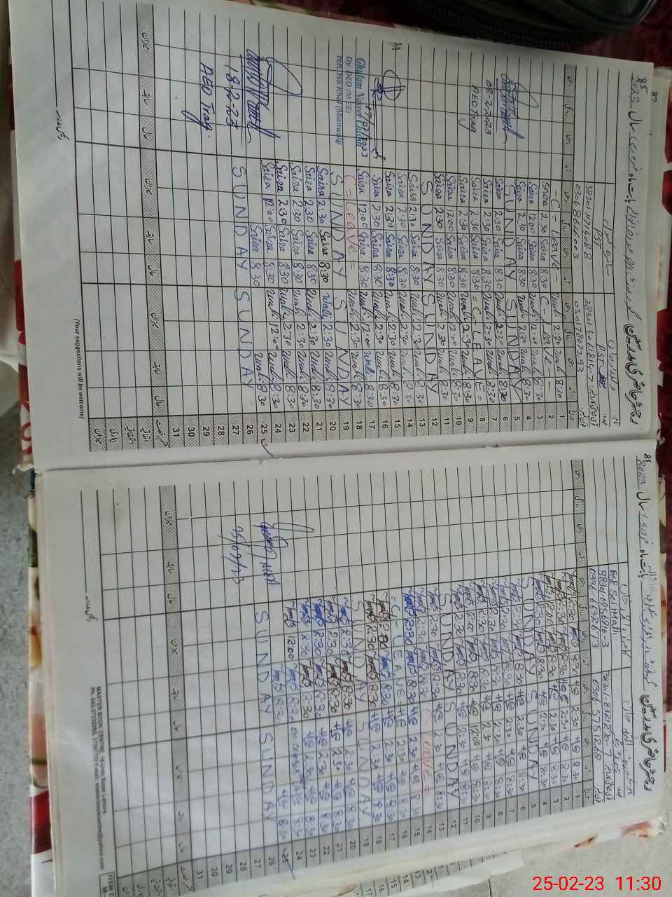 | Leave | Duty | Absent | Maternity | Medical | Ex- Pak |