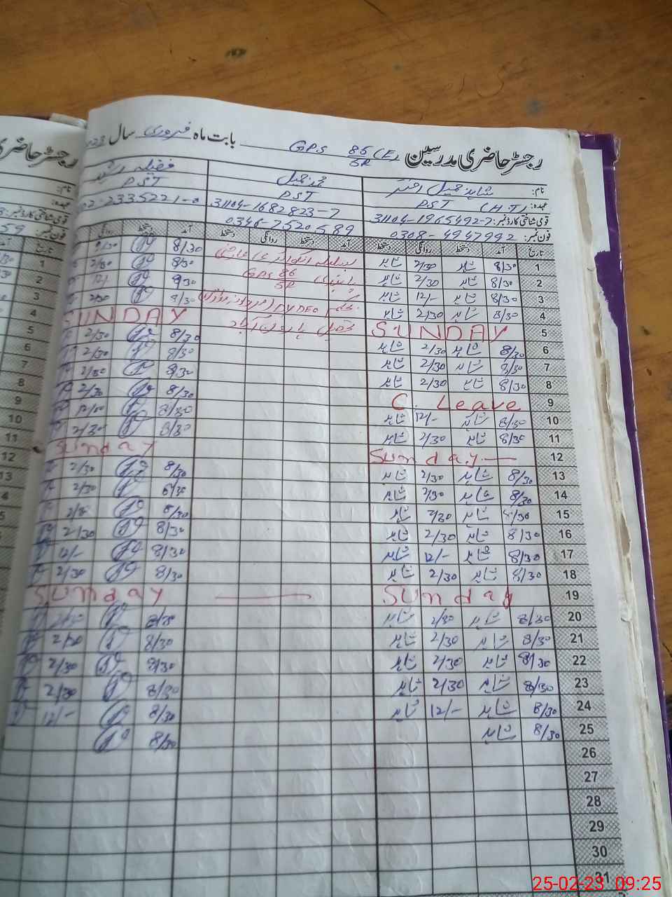 | CNIC | Full Name | Designation | R/C | Absence During Last Calender Month |