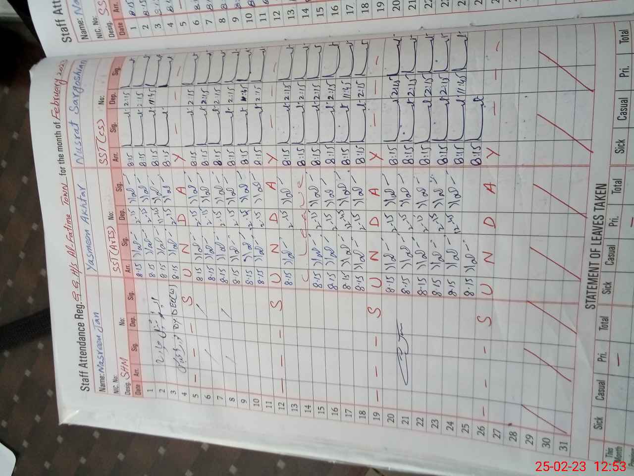 | CNIC | Full Name | Designation | R/C | Absence During Last Calender Month |