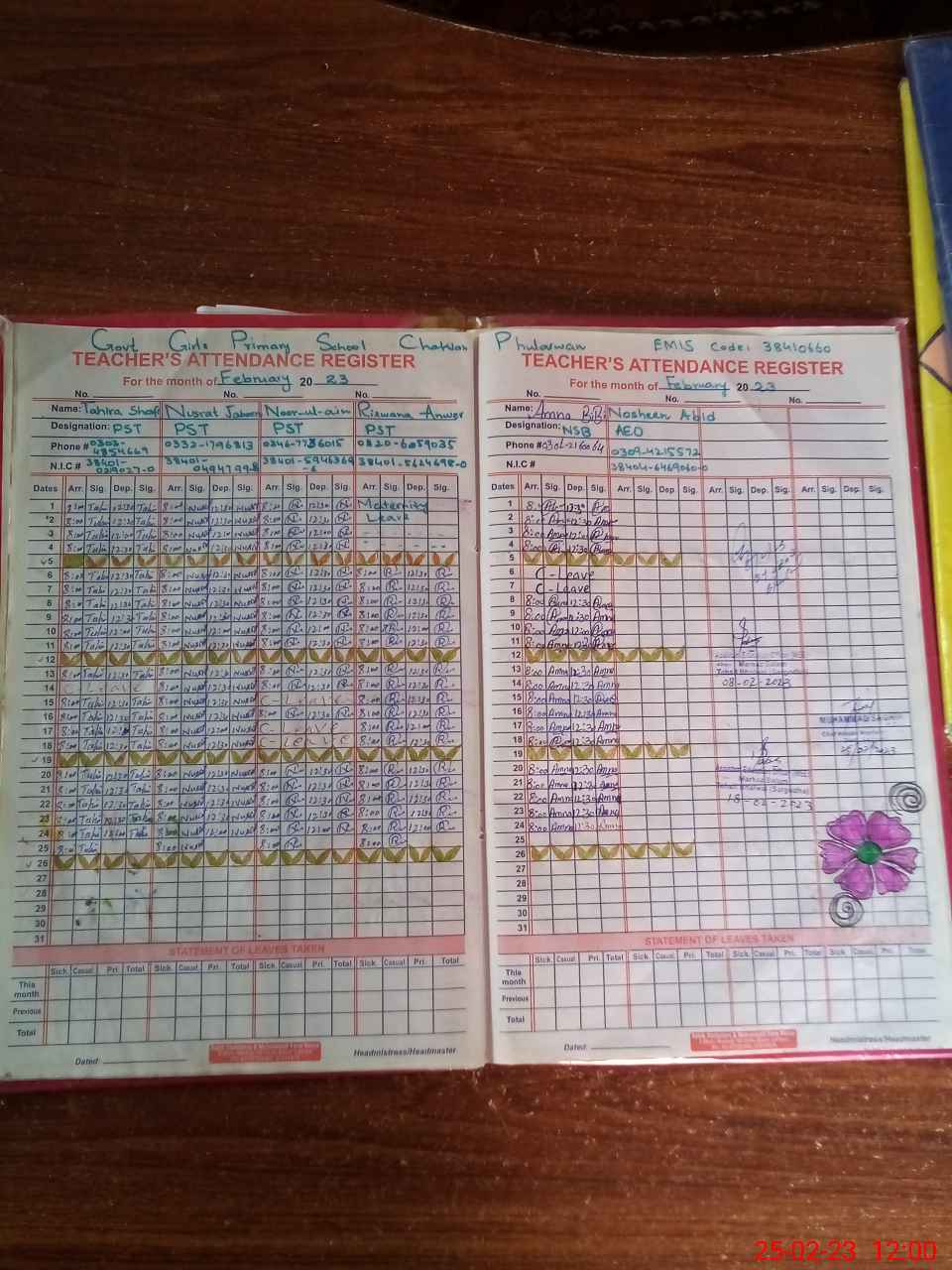 | Name: RI**** AN**** Designation: (School Headmaster's/Headmistress's) PST Phone/Cell Number: 03**** |