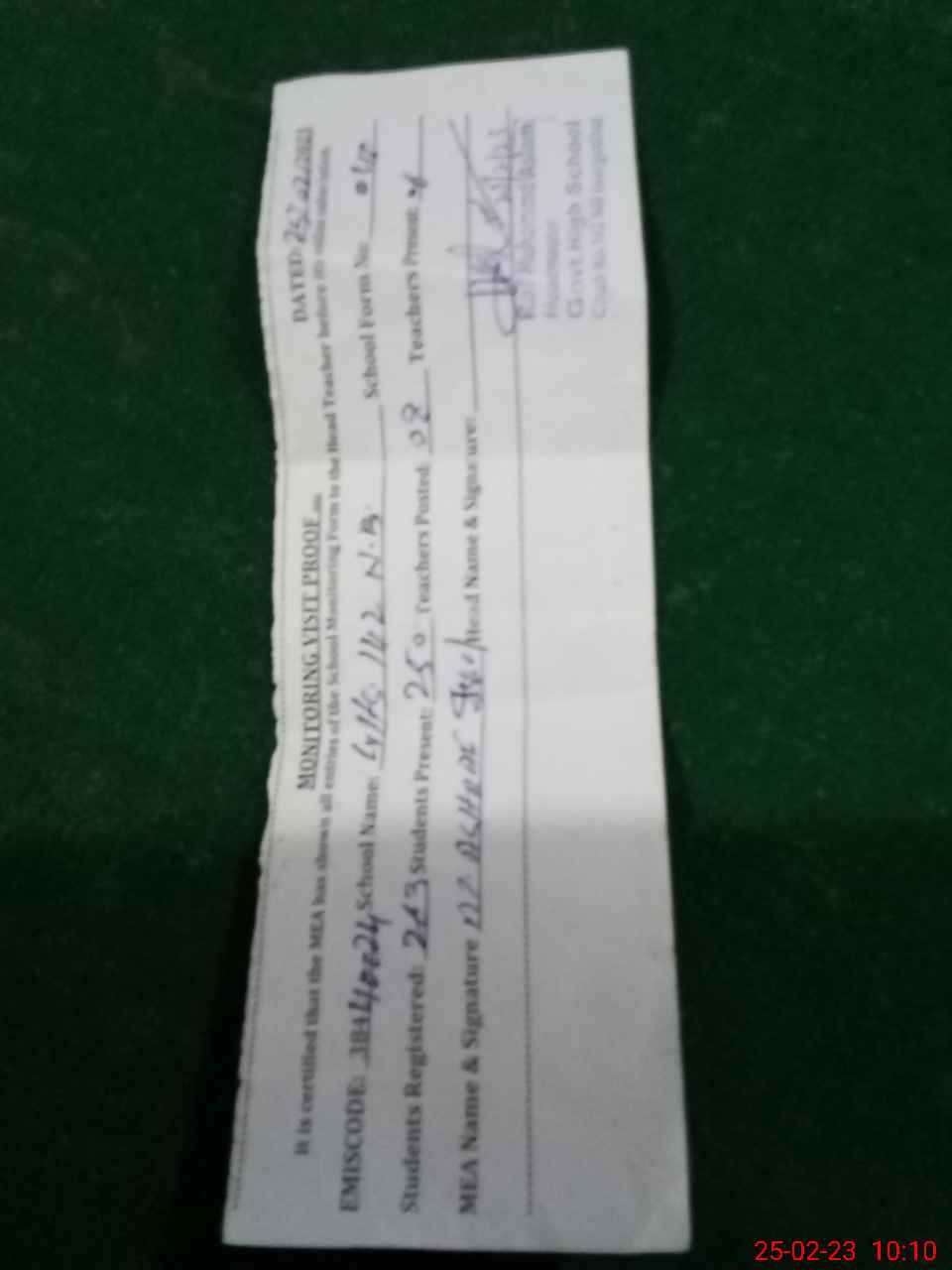 | Certified that this School was Inspected by the Undersigned MEA/DMO Today and the Information Stated Above is as Per Record. | |||||