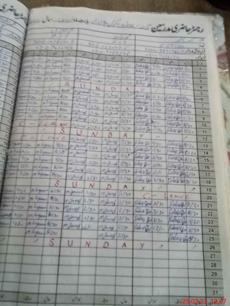 | CNIC | Full Name | Designation | R/C | Absence During Last Calender Month |