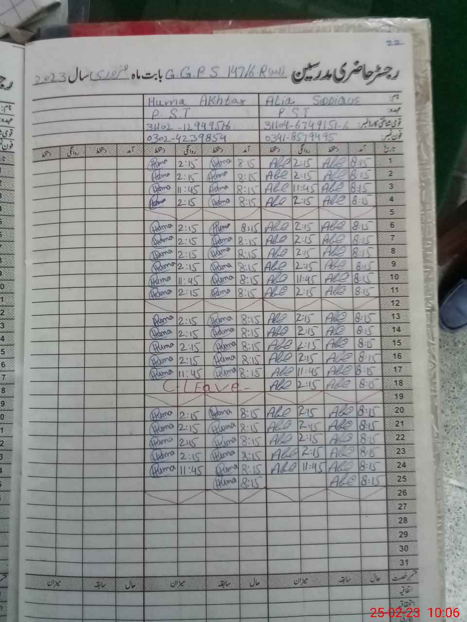 | Name: Al**** Si**** Designation: (School Headmaster's/Headmistress's) PST Phone/Cell Number: 03**** |