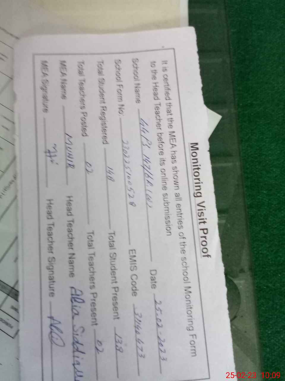 | Certified that this School was Inspected by the Undersigned MEA/DMO Today and the Information Stated Above is as Per Record. | |||||