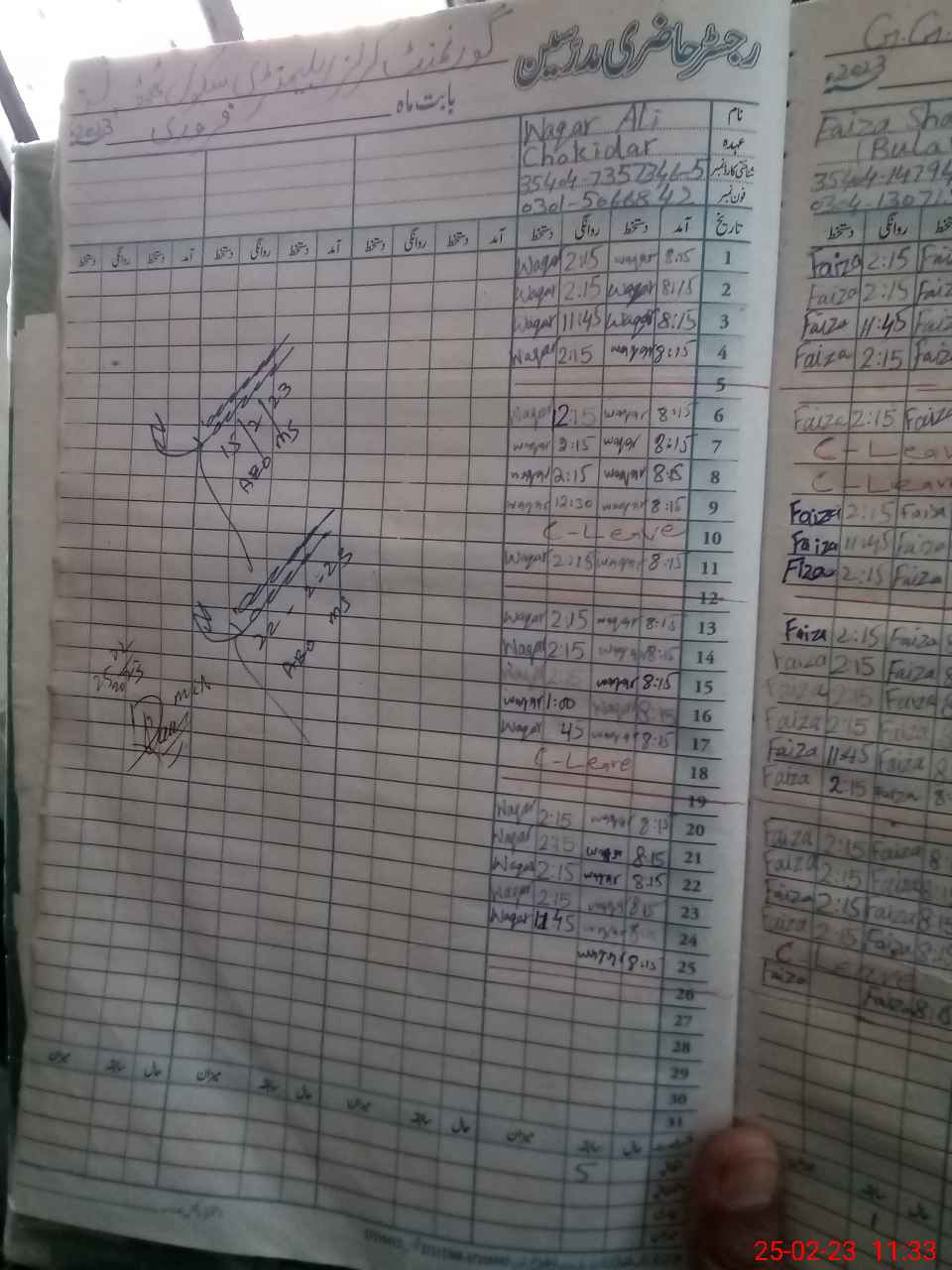 | CNIC | Full Name | Designation | R/C | Absence During Last Calender Month |