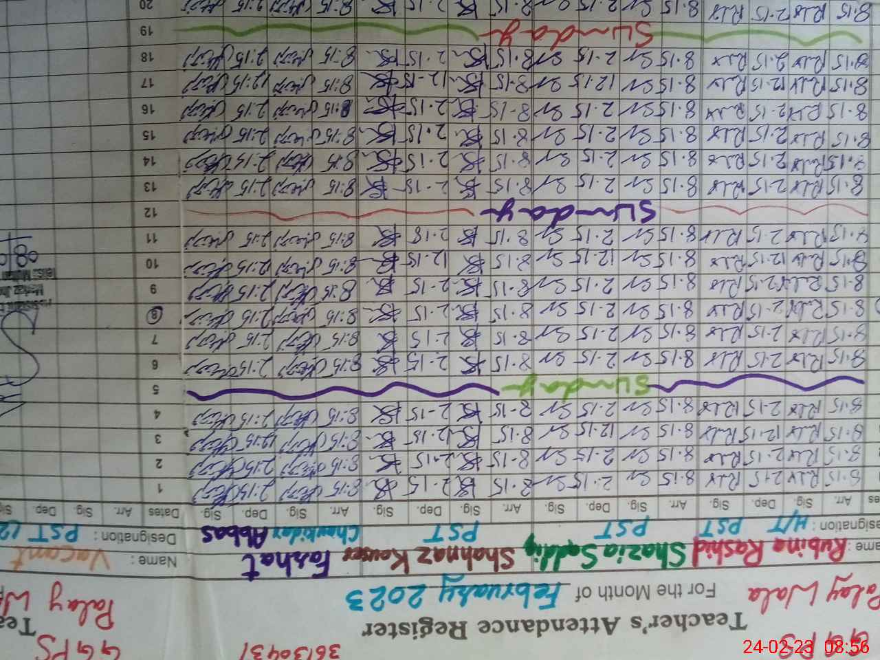 | CNIC | Full Name | Designation | R/C | Absence During Last Calender Month |