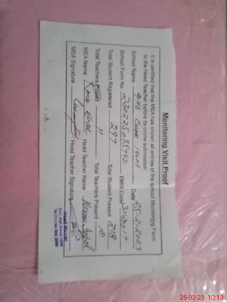 | Certified that this School was Inspected by the Undersigned MEA/DMO Today and the Information Stated Above is as Per Record. | |||||