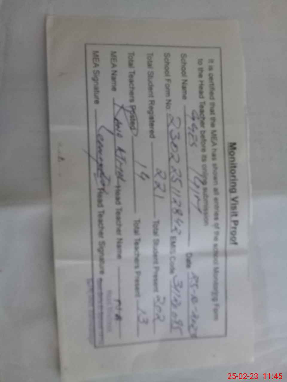 | Certified that this School was Inspected by the Undersigned MEA/DMO Today and the Information Stated Above is as Per Record. | |||||
