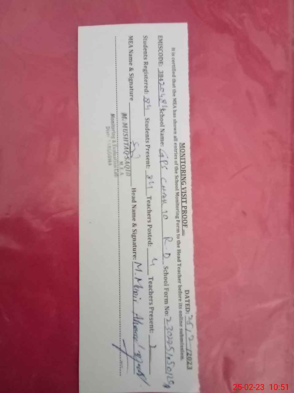 | EMIS Code: 38420484 | Name of School: GPS CHAK NO.10 REMOUNT DEPOT | |||