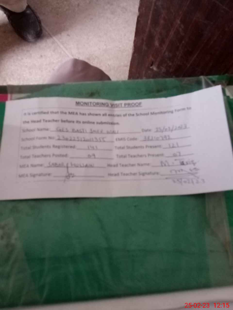 | EMIS Code: 38210792 | Name of School: GES BASTI SHER WALI | |||