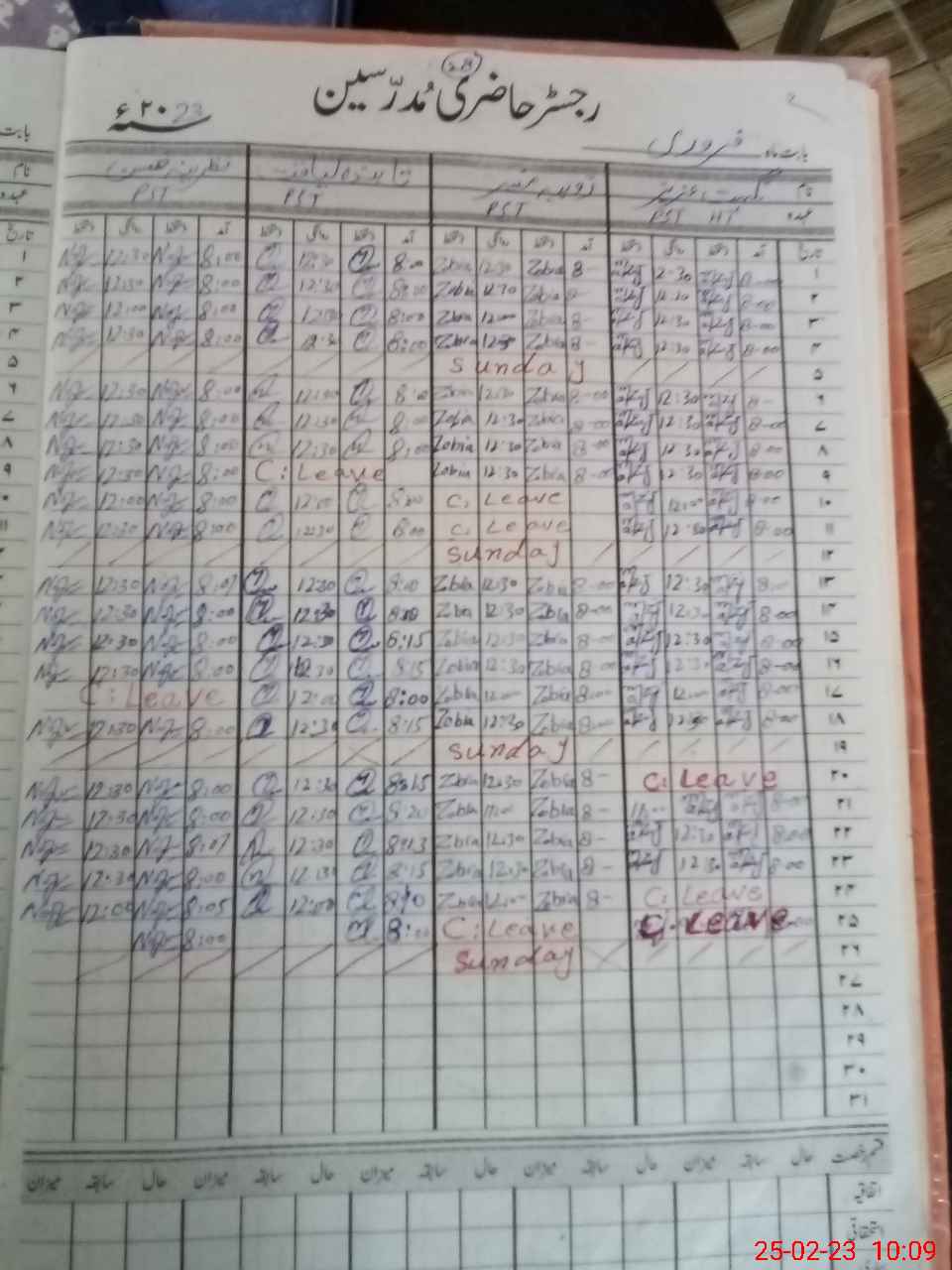 | CNIC | Full Name | Designation | R/C | Absence During Last Calender Month |